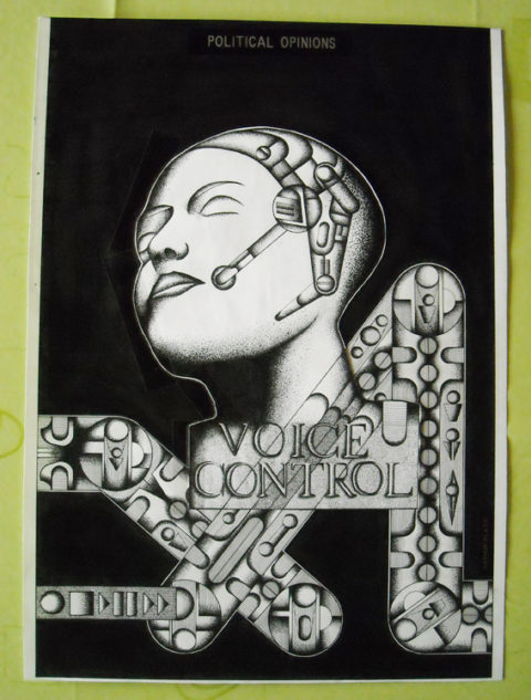 Drawed at Tarbes (France) in the chamber at home, inspired by electronic music and Science Fiction, all was drawed listening music with headphones and tapes (Front Line Assembly, Skinny Puppy, …
